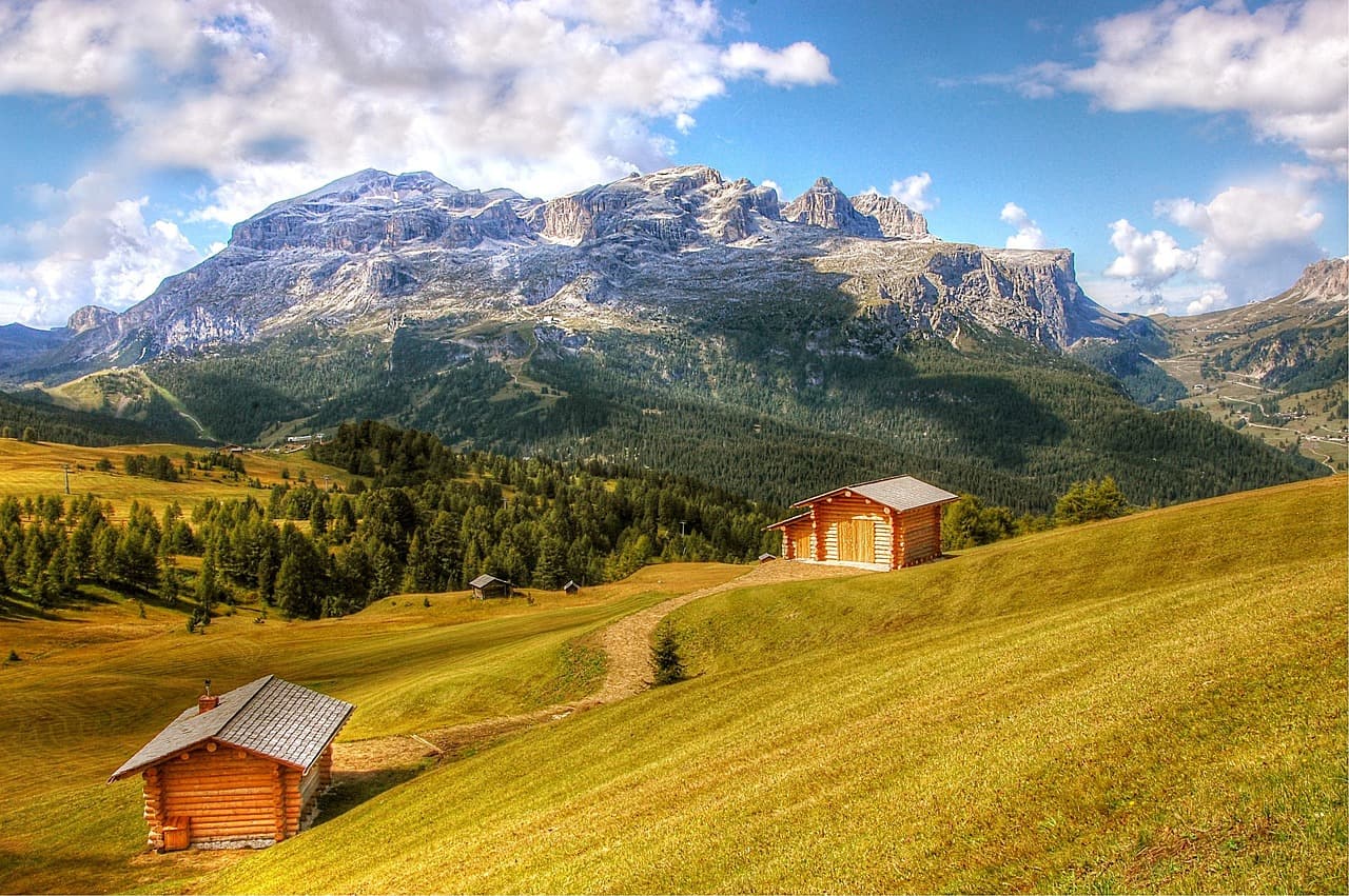 From there, the convertible route continues to Pordoi Pass, one of the most famous Dolomite passes. This section is a highlight of any convertible road trip, with a perfectly constructed road and breathtaking views of the Marmolata, the highest mountain in the Dolomites. In Canazei, it’s worth making a stop to enjoy the Italian side of South Tyrol: an espresso on the piazza, surrounded by rugged peaks and the gentle soundscape of the mountain wind.